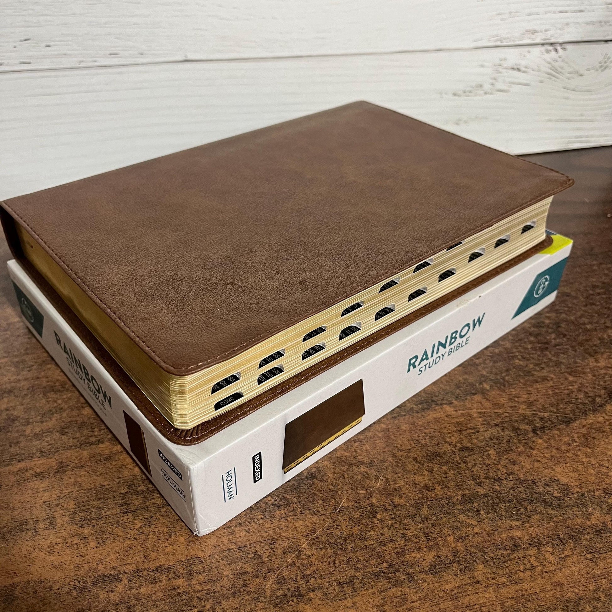 Personalized CSB Rainbow Study Bible Thumb Indexed - Brown LeatherTouch - Custom Imprinted name engraved, ISBN 978108774220