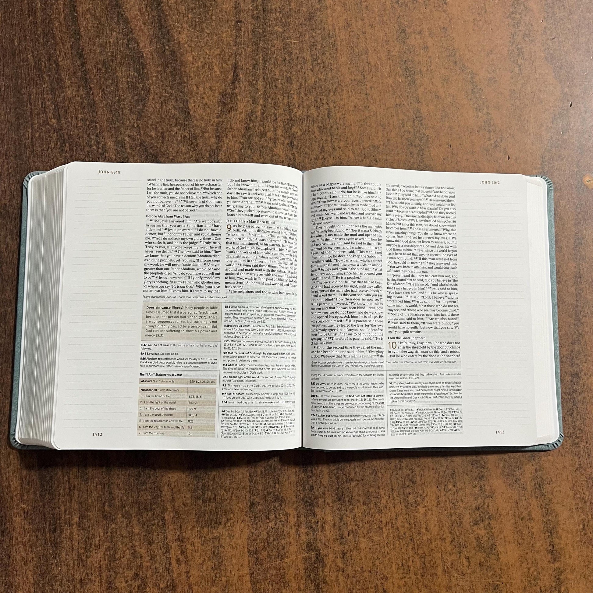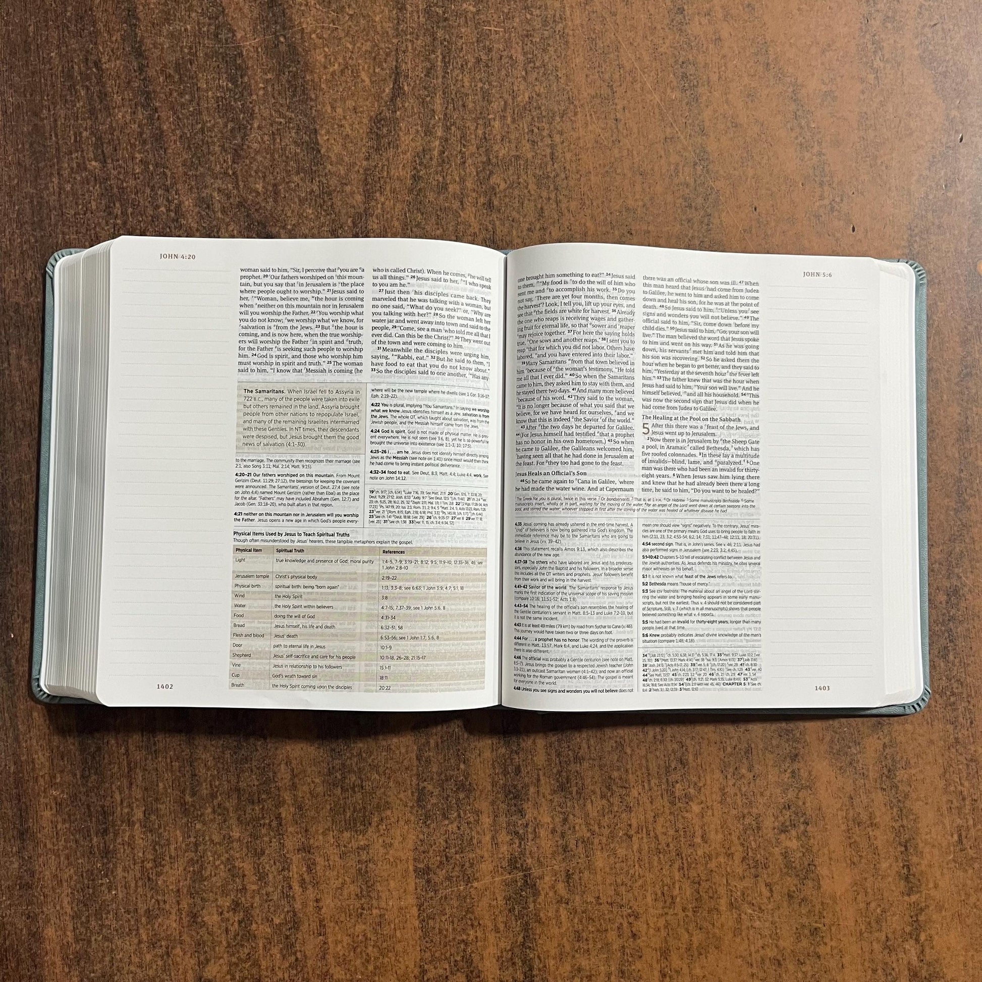 This is one of the few bibles on the market that has study notes and wide margins for note taking and journaling