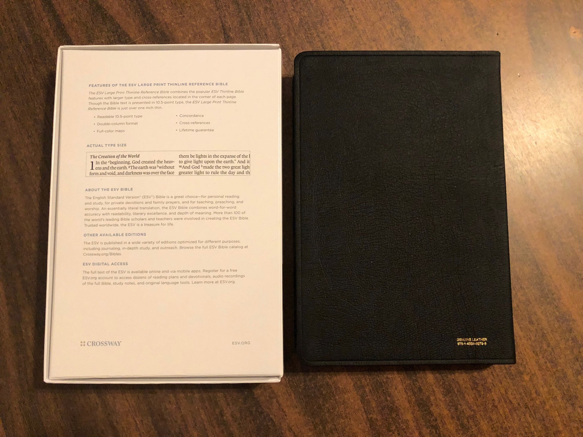 Personalized ESV Large Print Thinline Reference Bible - Black Genuine Leather, Custom Imprinted with name engraved - ISBN 9781433532795