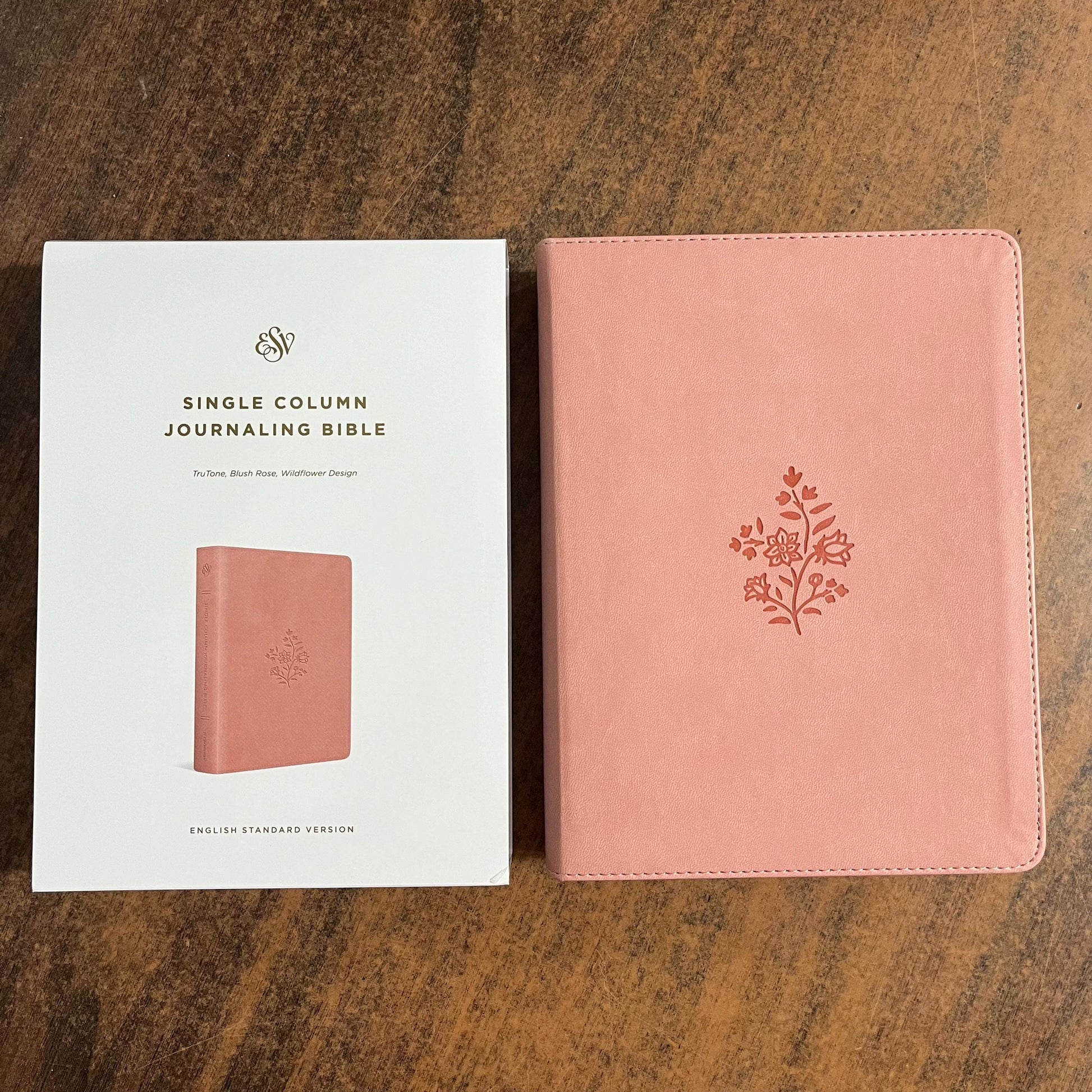 Personalized ESV Single Column Journaling Bible - Blush Rose (Pink) Trutone Wildflower Design - Custom Imprinted with Name 9798874900250