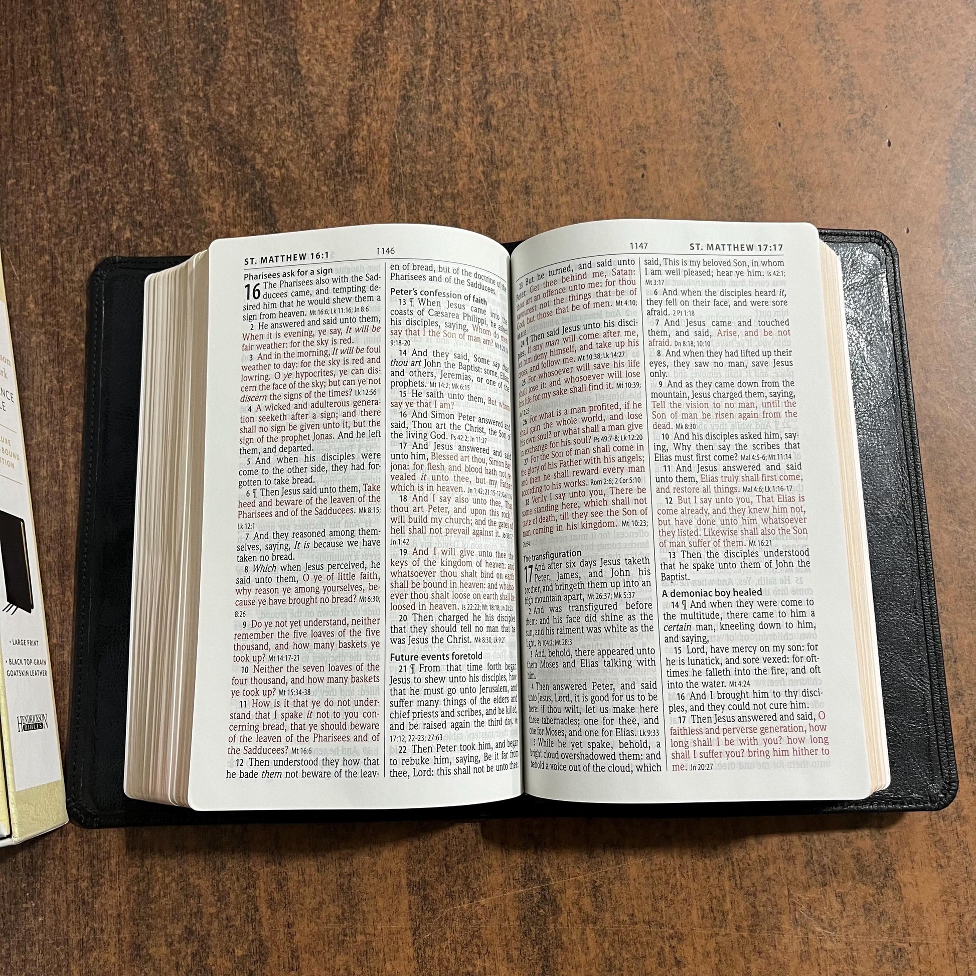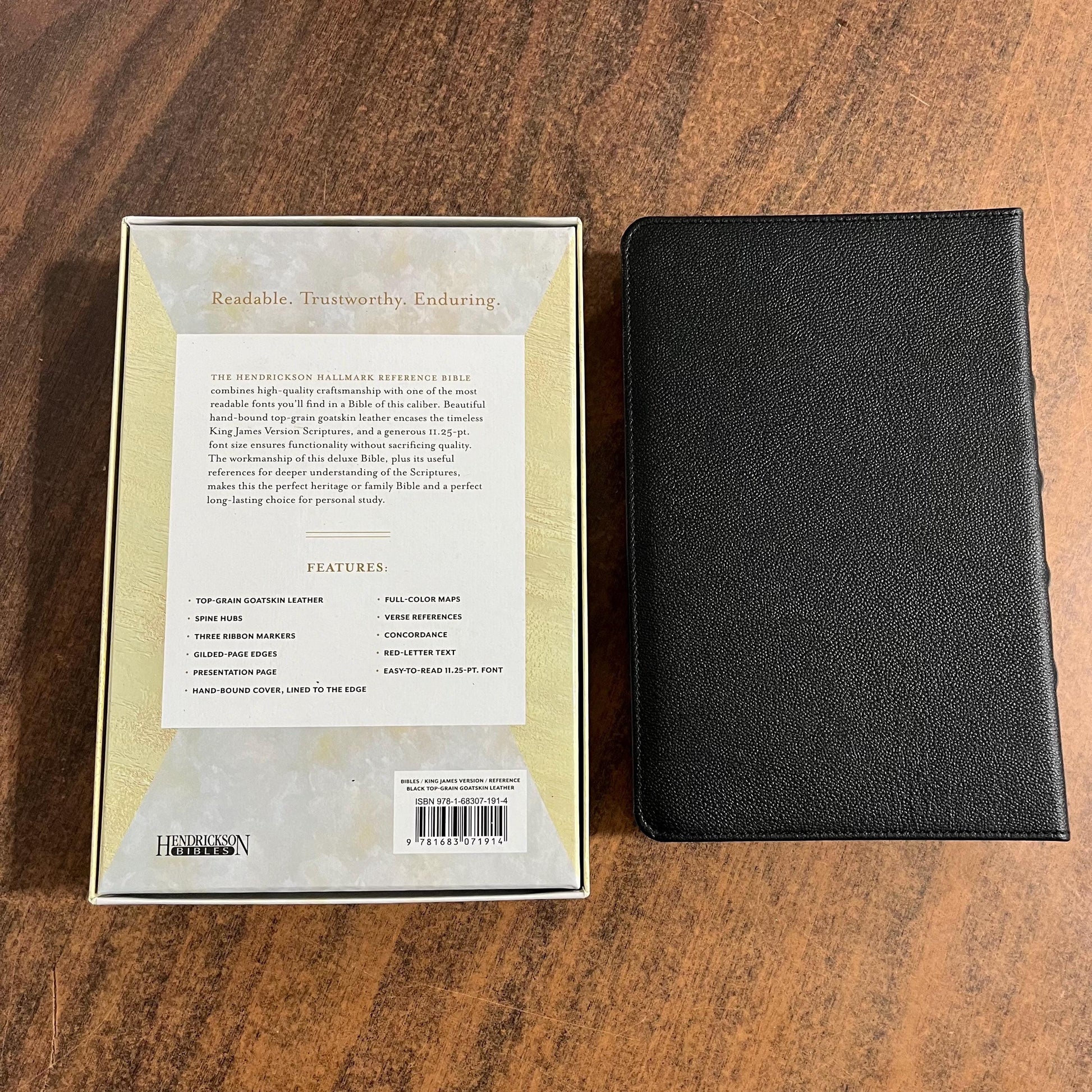 Personalized KJV Large Print Reference Bible - Black Top Grain Goatskin Genuine Leather - Custom Imprinted with name engraved, 9781683071914