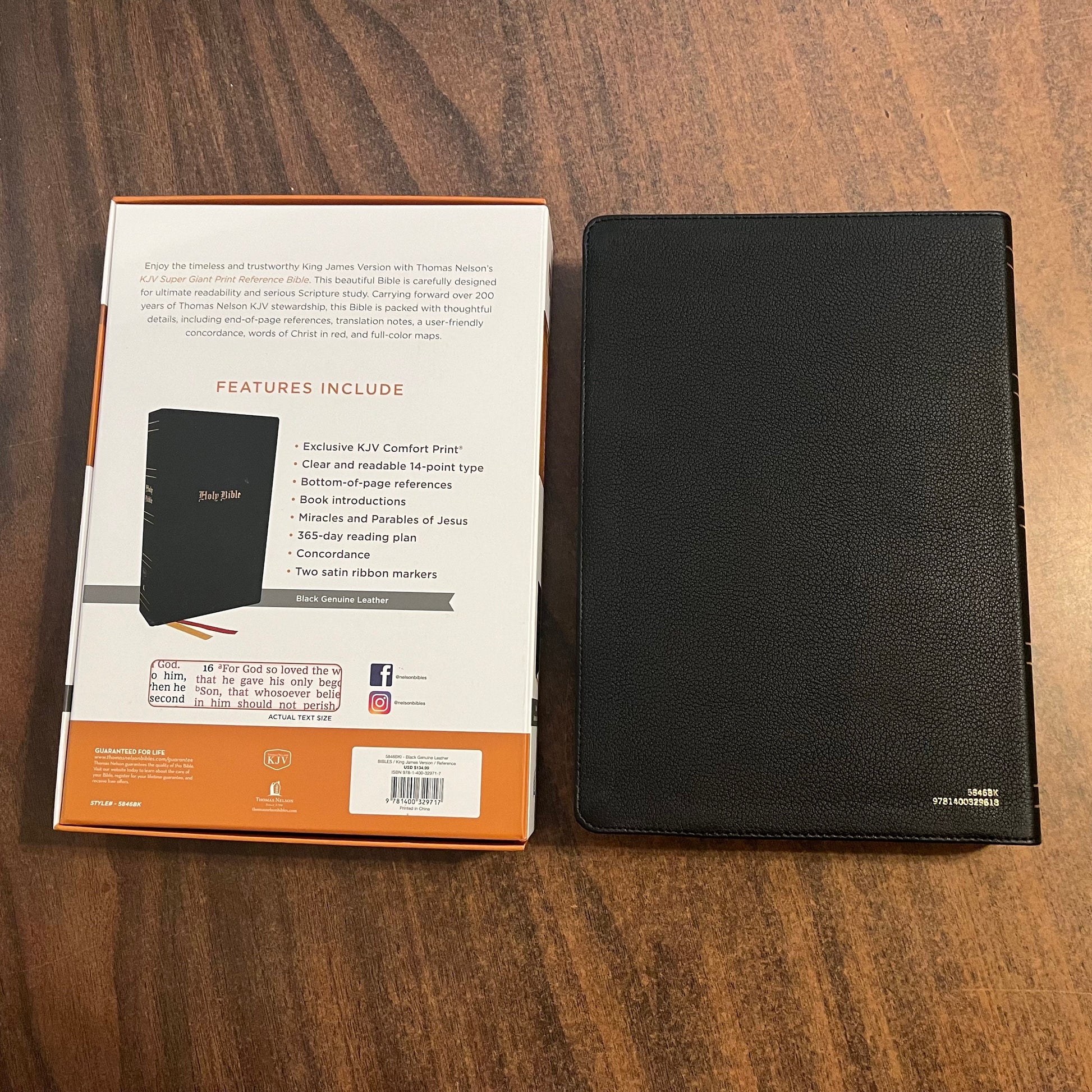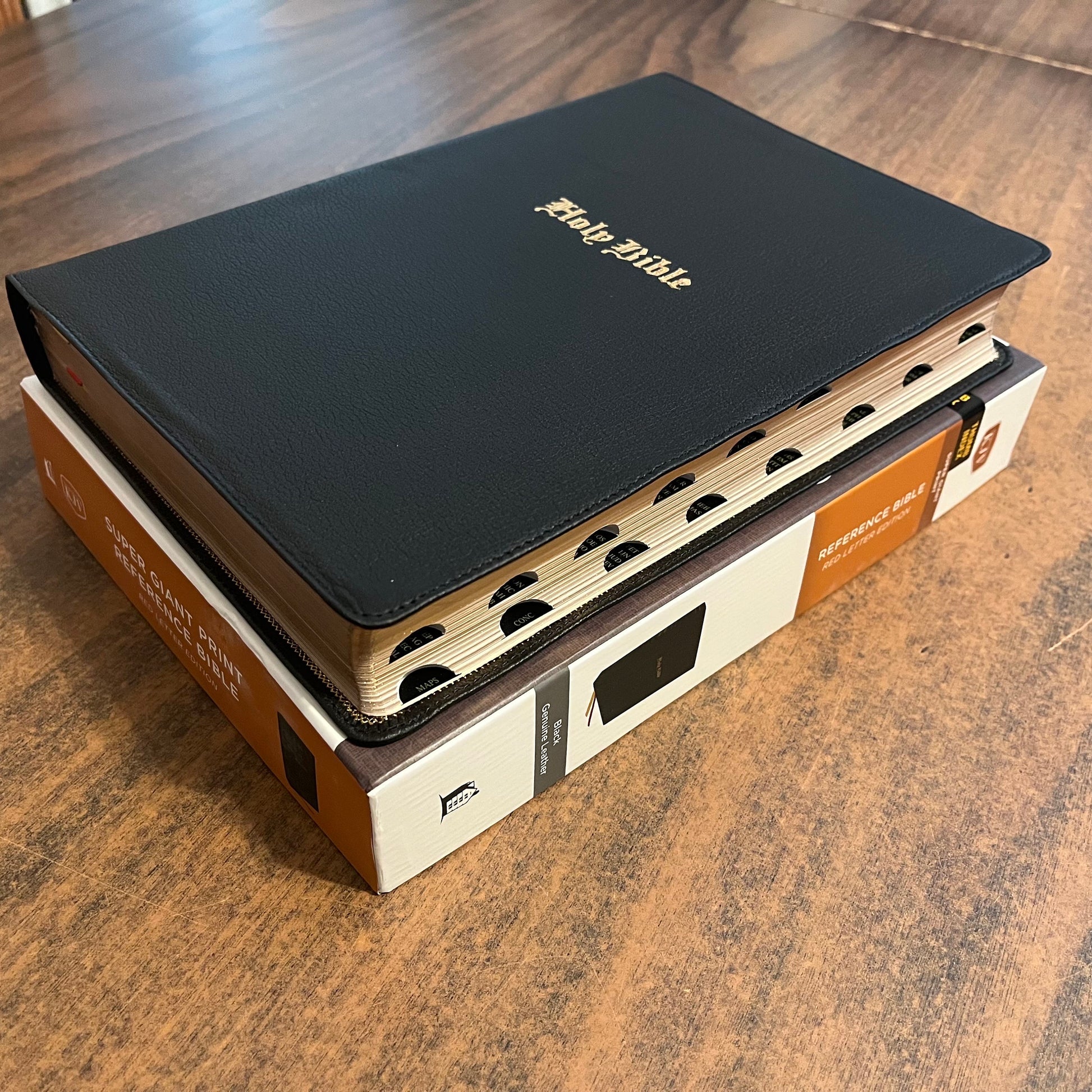 Personalized KJV Super Giant Print Reference Bible Thumb Indexed - Black Genuine Leather ** Custom Imprinted with name, 9781400329717
