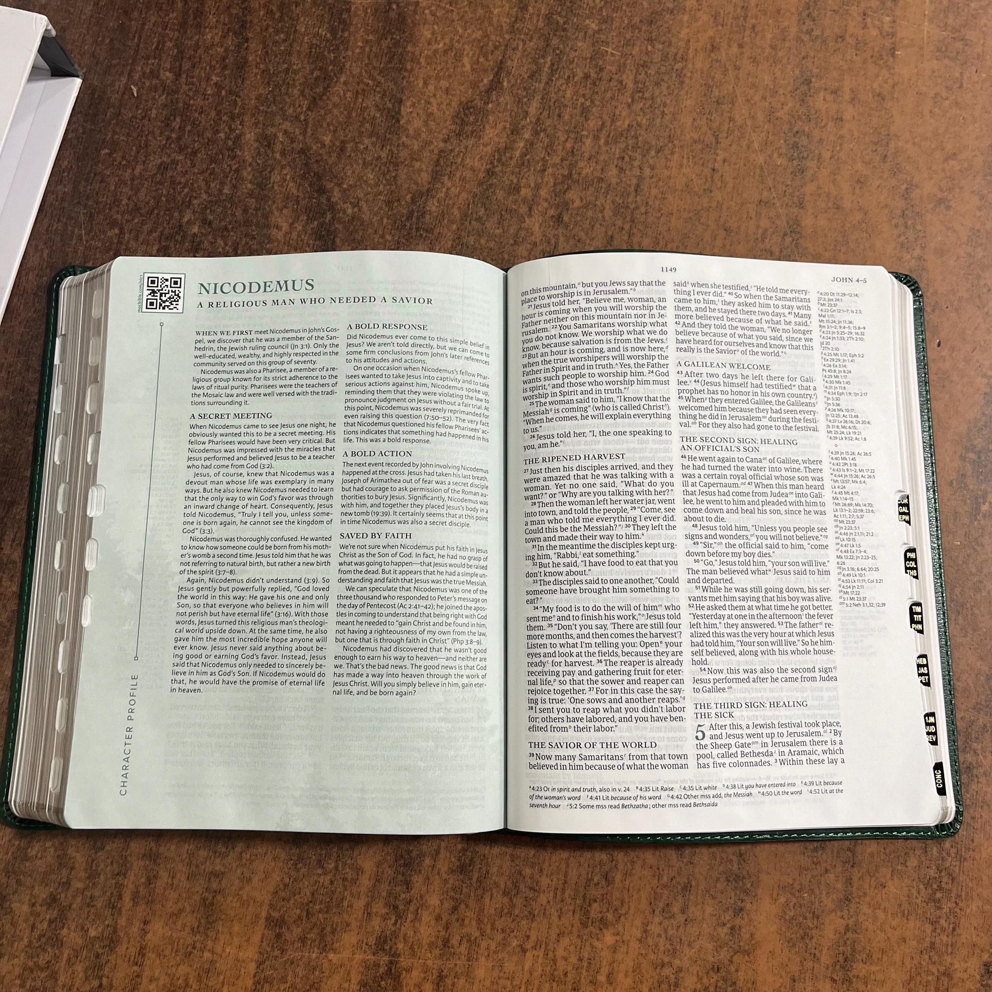 Personalized Mens Bible, CSB Men of Character Study Bible Thumb Indexed, Green LeatherTouch, Custom Imprinted engraved