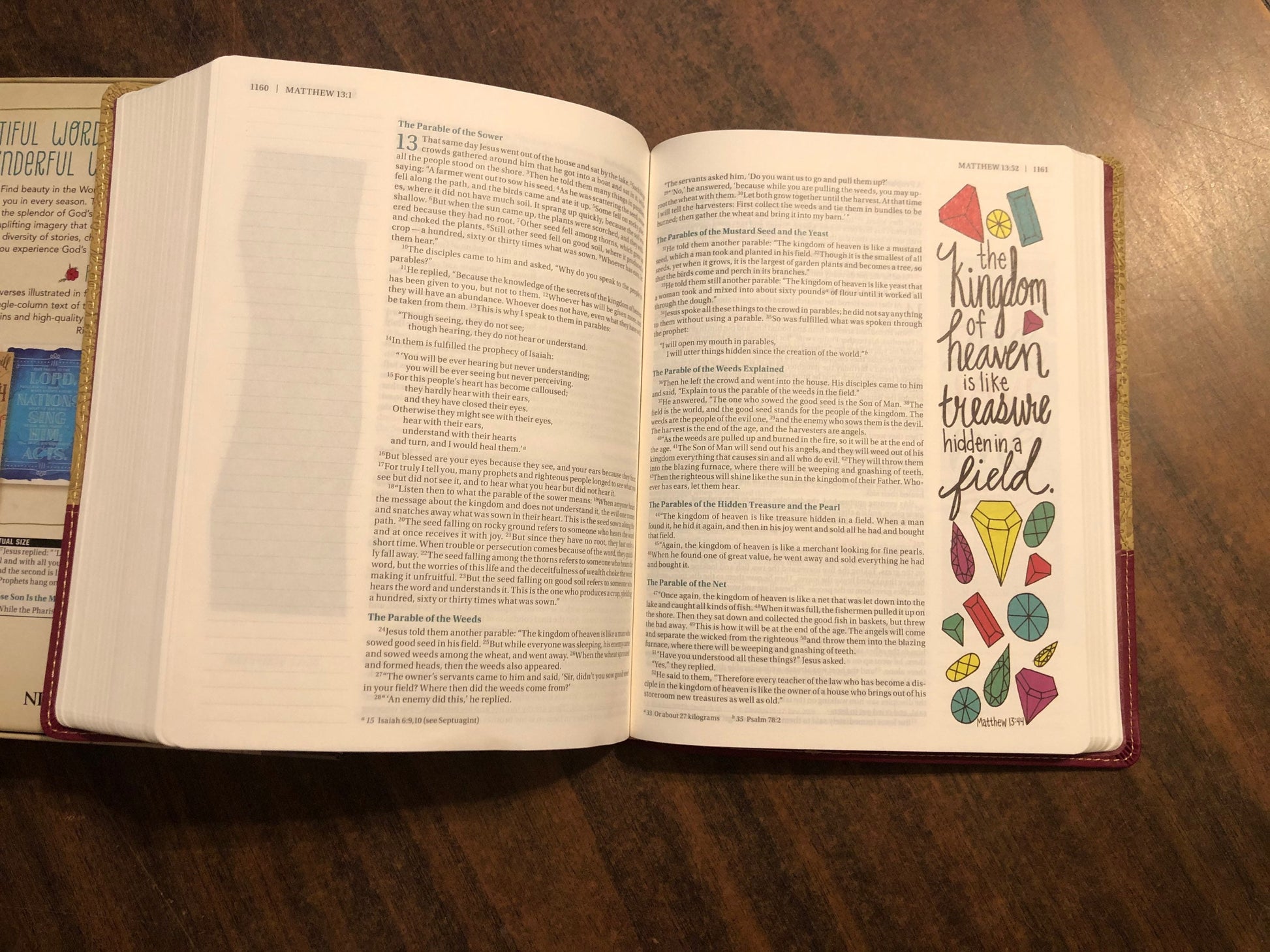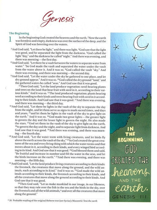 The Beautiful Word bible is a Journaling bible that has select verses full color illustrated throughout the bible.