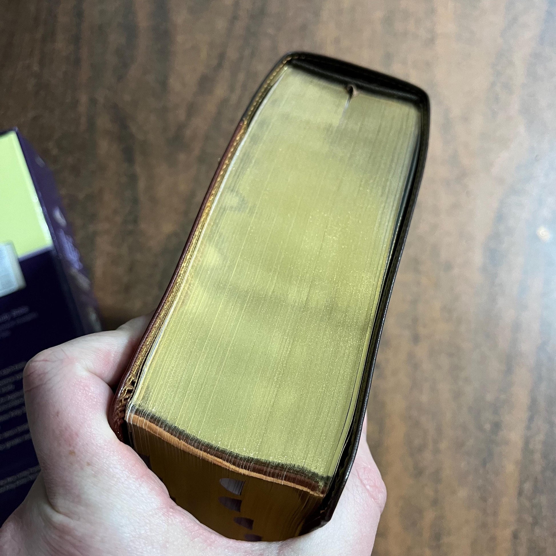 Personalized NKJV Large Print Life Application Study Bible Thumb Indexed - Brown / Mahogany LeatherLike -Custom Imprinted with name engraved 9781496452061