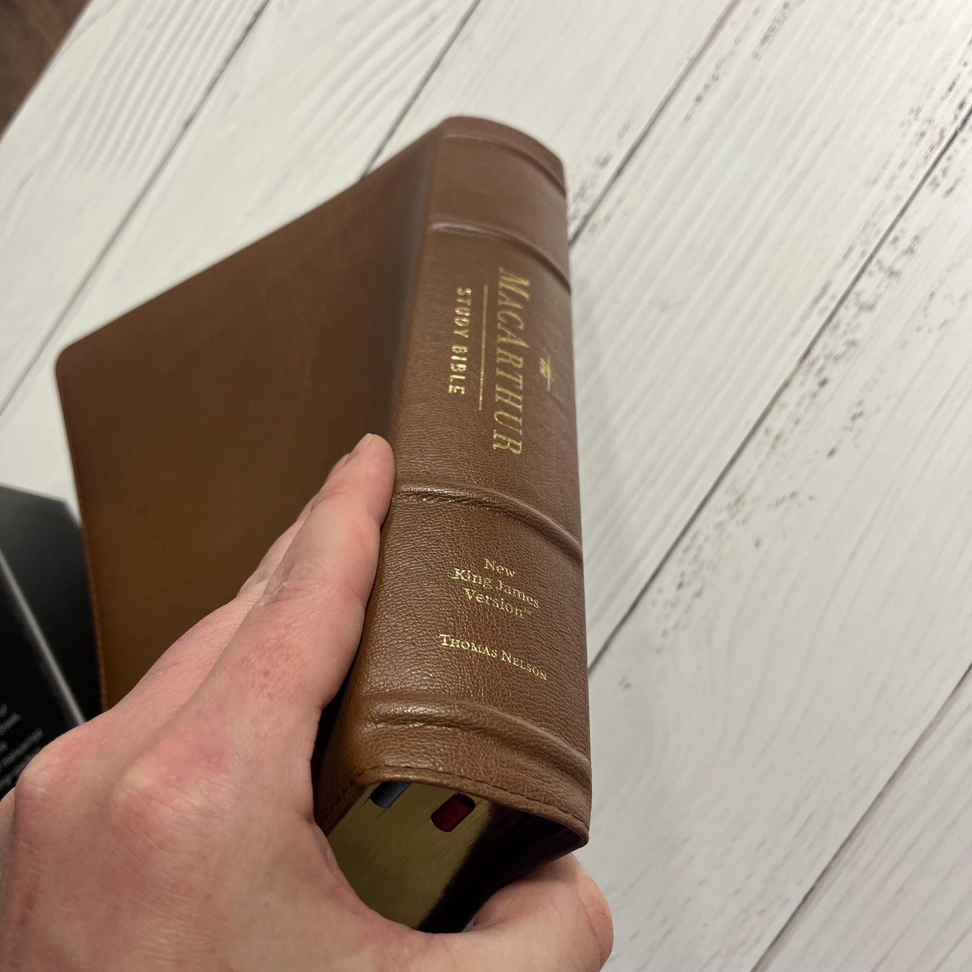 Personalized NKJV MacArthur Study Bible, Brown Premium Genuine Goatskin Leather, Premier Collection ISBN 9780785230885