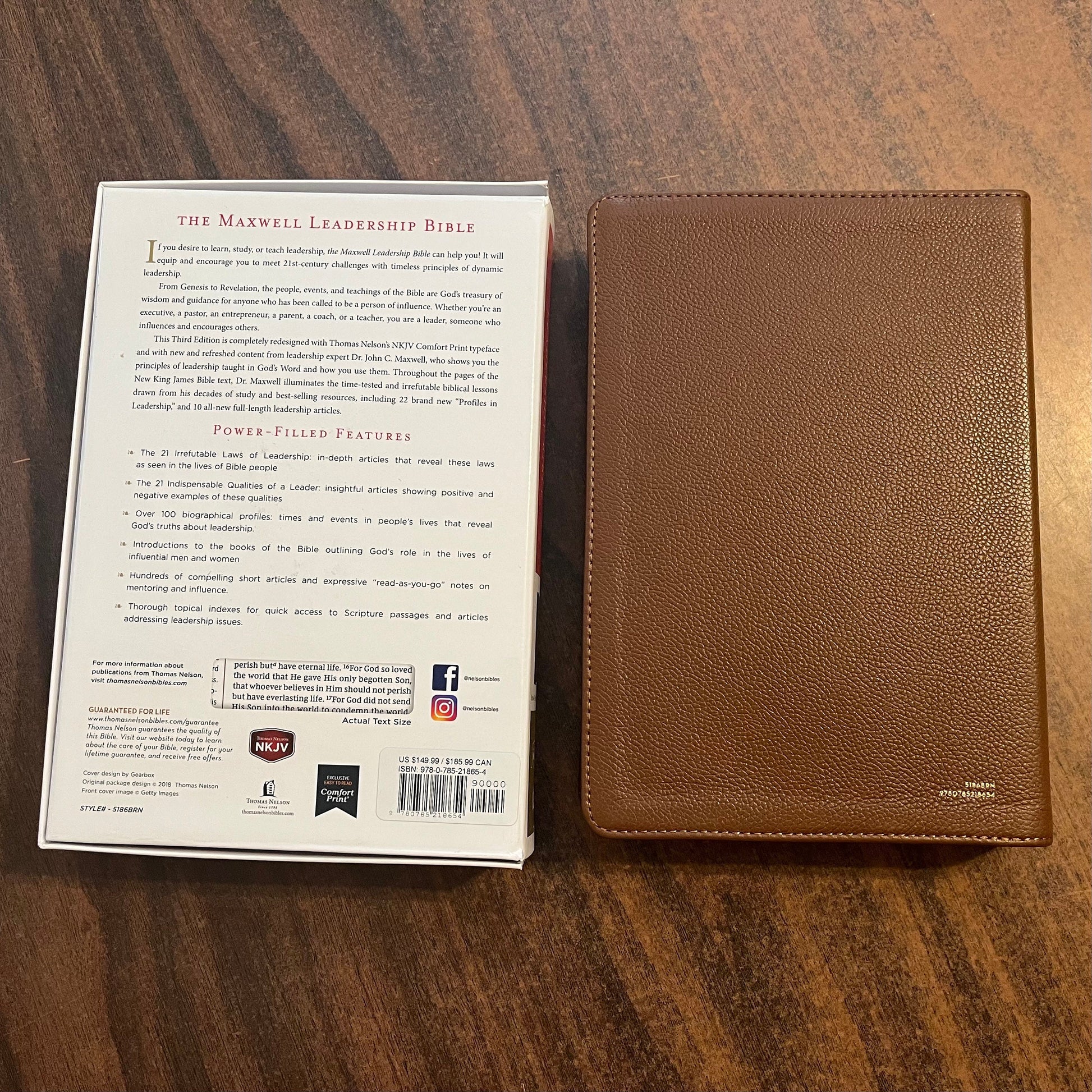 Personalized NKJV Maxwell Leadership Study Bible - Brown Genuine Leather - Custom Imprinted with name 9780785218654