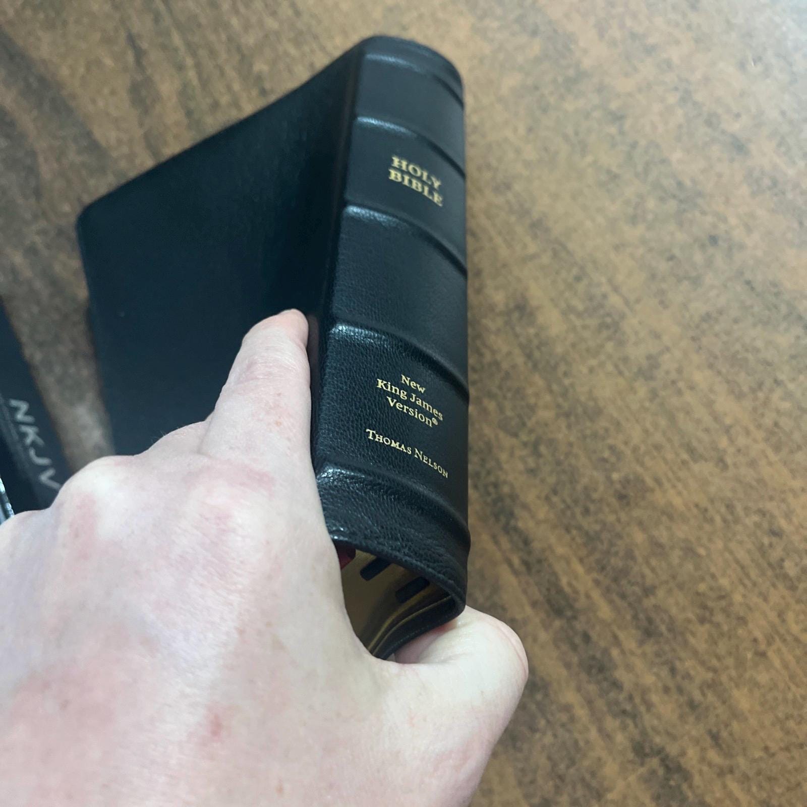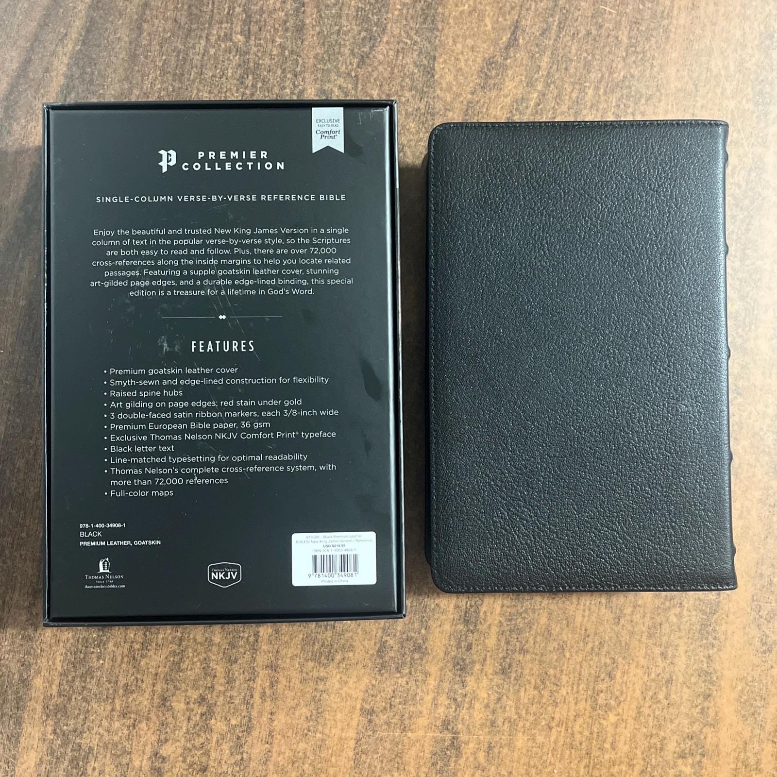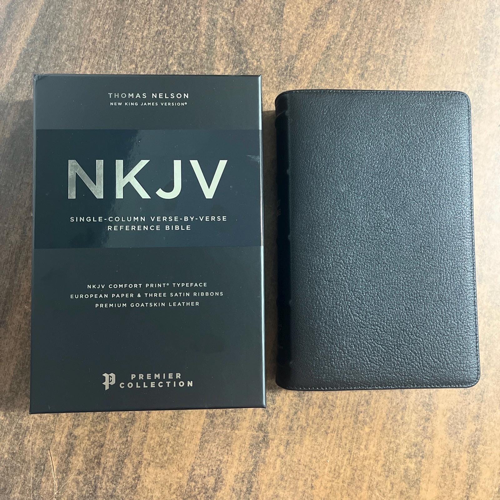 Personalized NKJV Single Column Reference Premier Collection Bible - Black Goatskin Premium Genuine Leather, Custom Imprinted 9781400349081