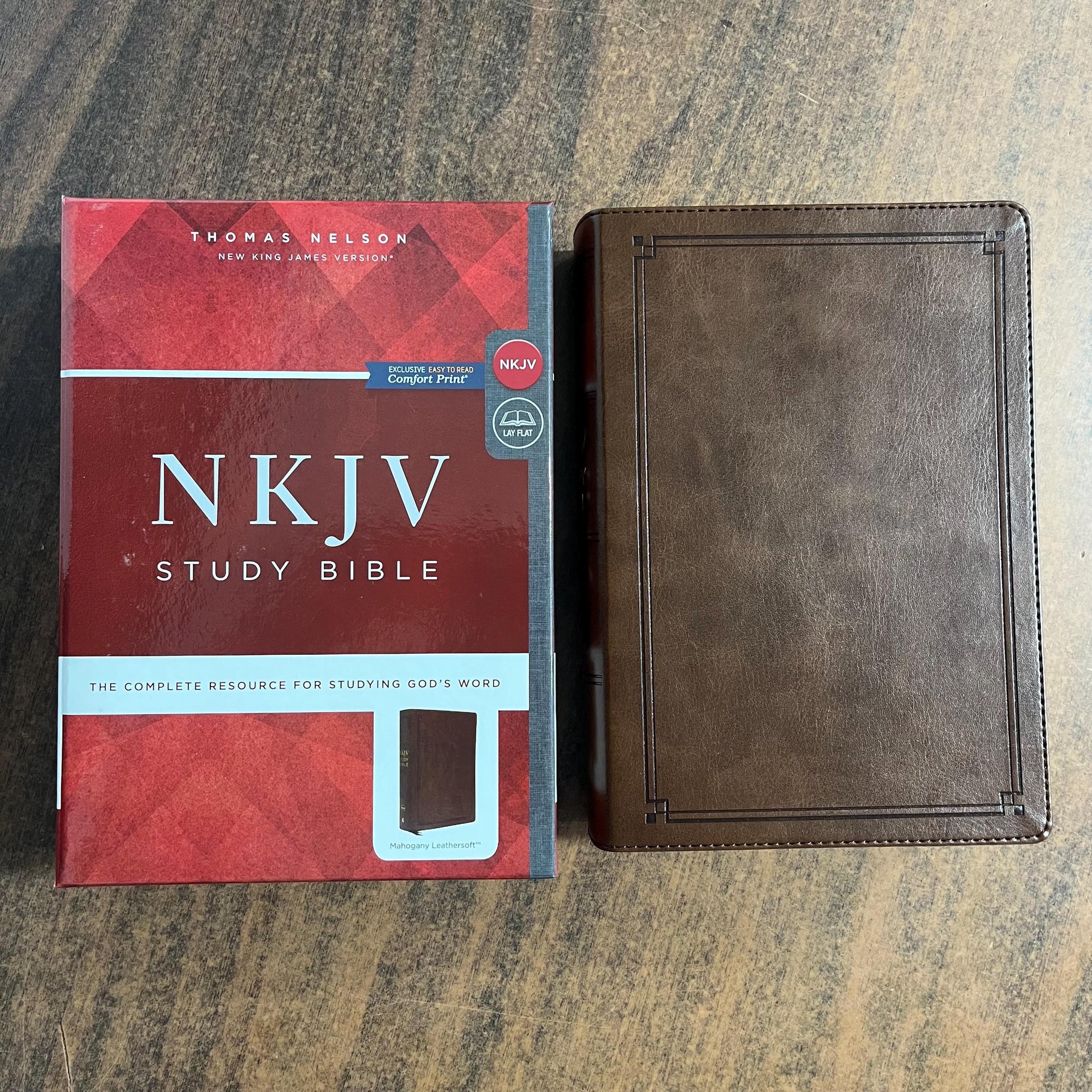 Personalized NKJV Study Bible - Mahogany Brown LeatherSoft, Cover Custom Imprinted with a name - 9780785220589