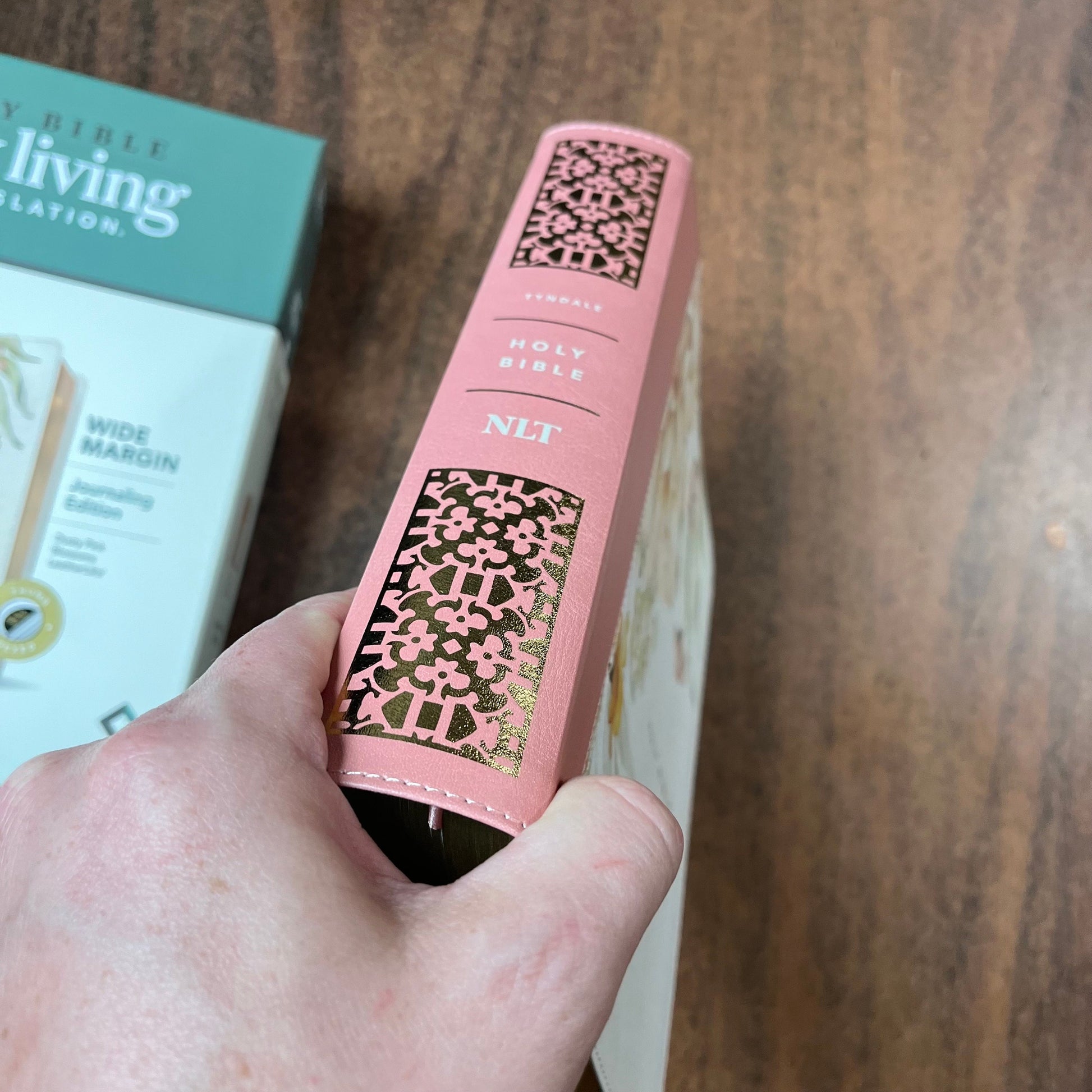 Personalized NLT Wide Margin Bible Thumb Indexed Journaling Edition - Dusty Pink Blossoms LeatherLike - Imprinted with name, Single Column 9781496484024